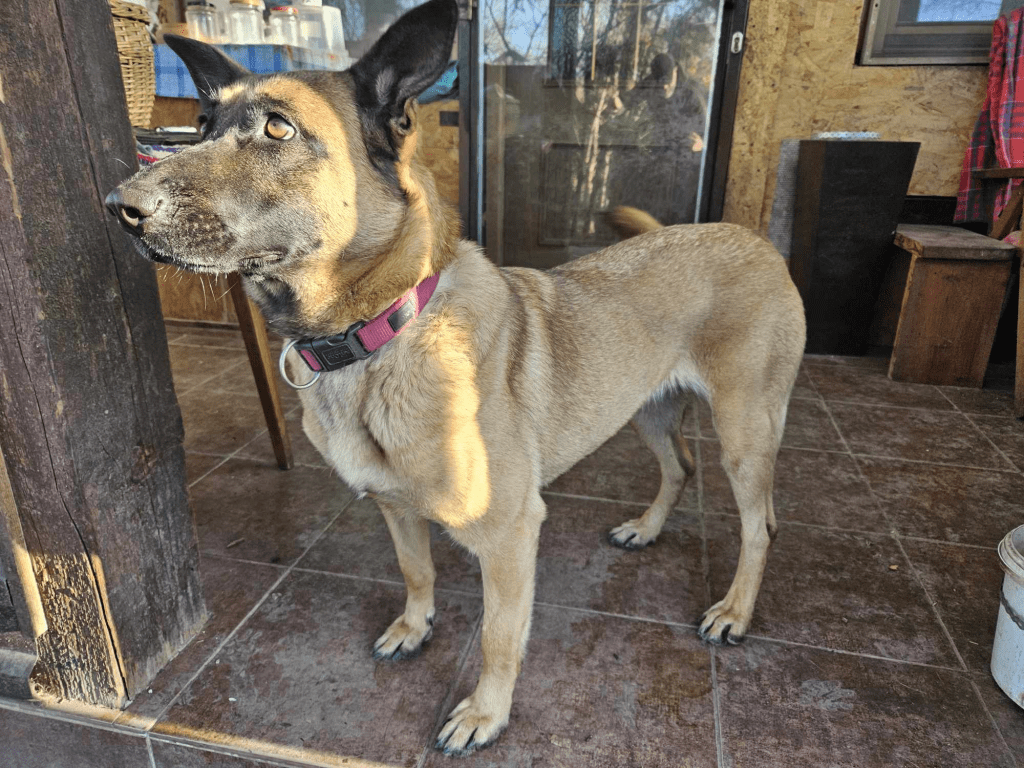 2 éves, gyönyörű, okos belga juhász kutyára hasonlító lány kutya, igazi szeretetbomba kutyus, más kutyákkal kompatibilis, a baromfit és a cicákat nem szereti. Olyan gazdát keresünk neki, akinek van kellő ideje vele foglalkozni, tanítani, levezetni a felesleges energiáját, mert rettentő mozgékony, játékos kutyus.