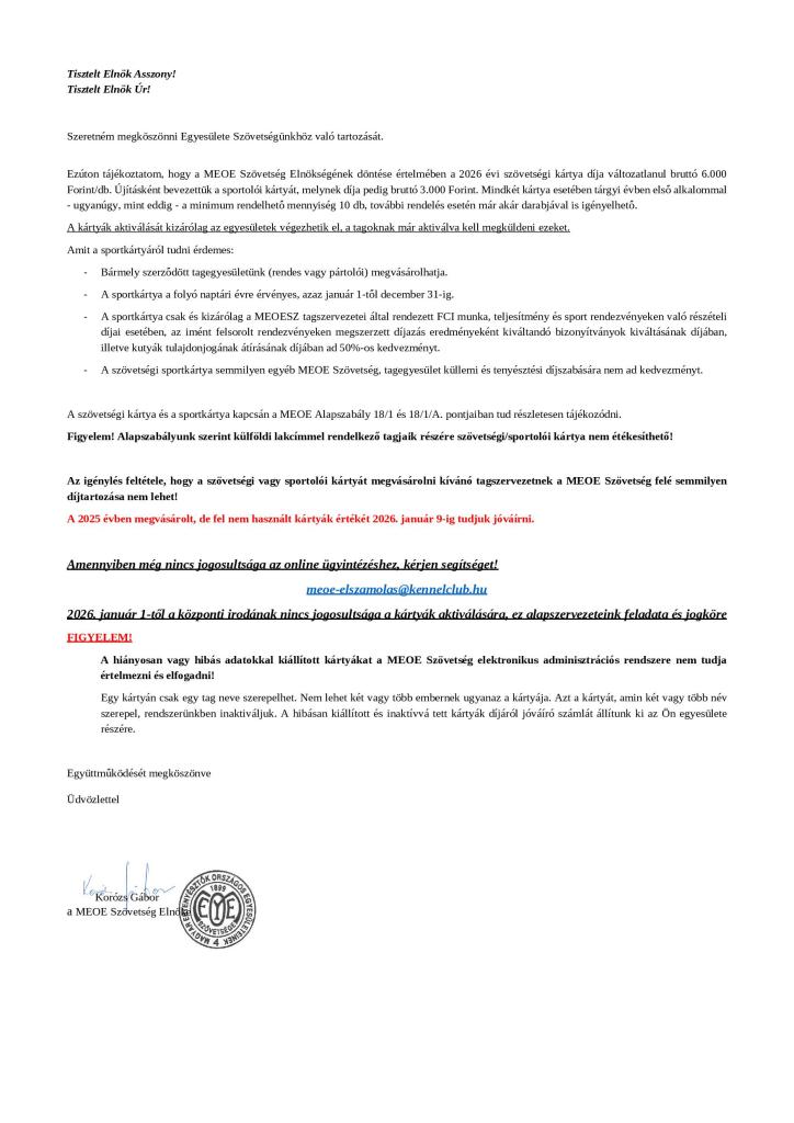 A szövetségi kártya aktiválását a jövőben csak és kizárólag az egyesületek végezhetik el, a tagoknak már aktiválva kerül megküldésre a szövetségi kártya.